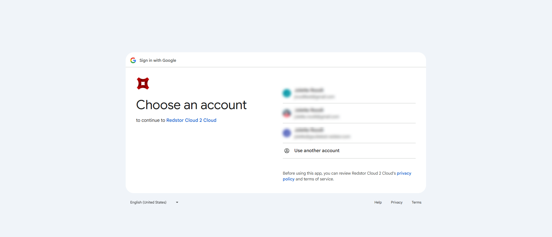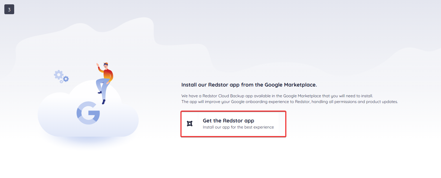 5. After logging into Google, you will see the following screen. Click on Get the Redstor app.