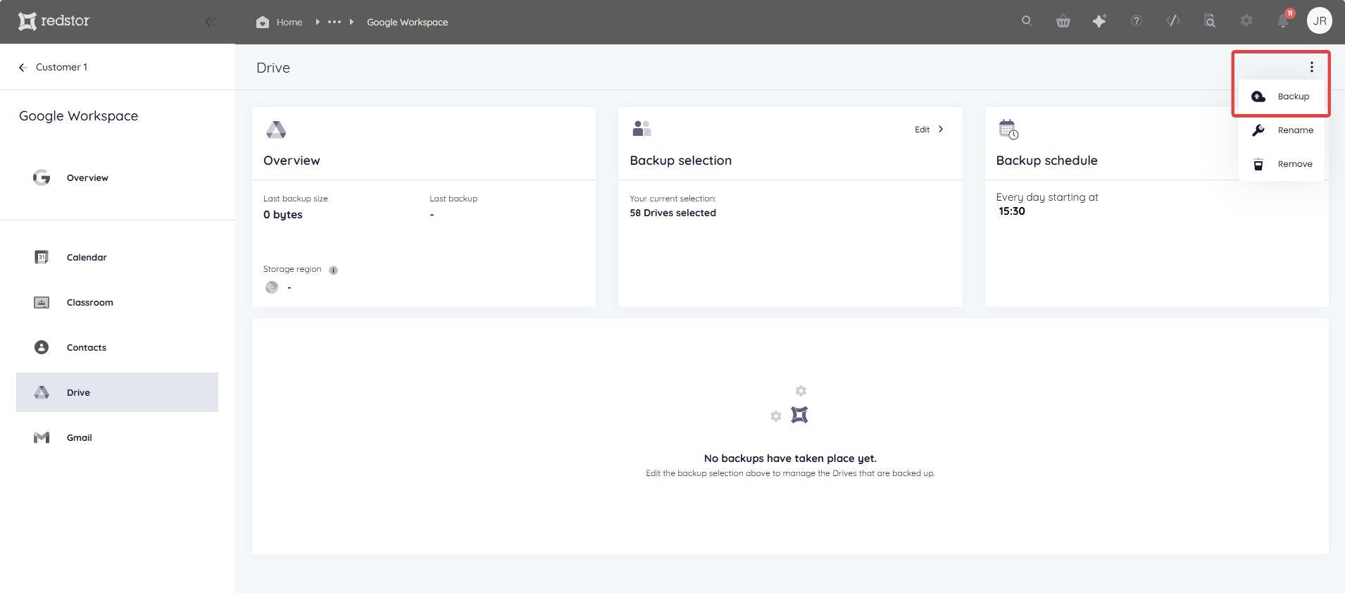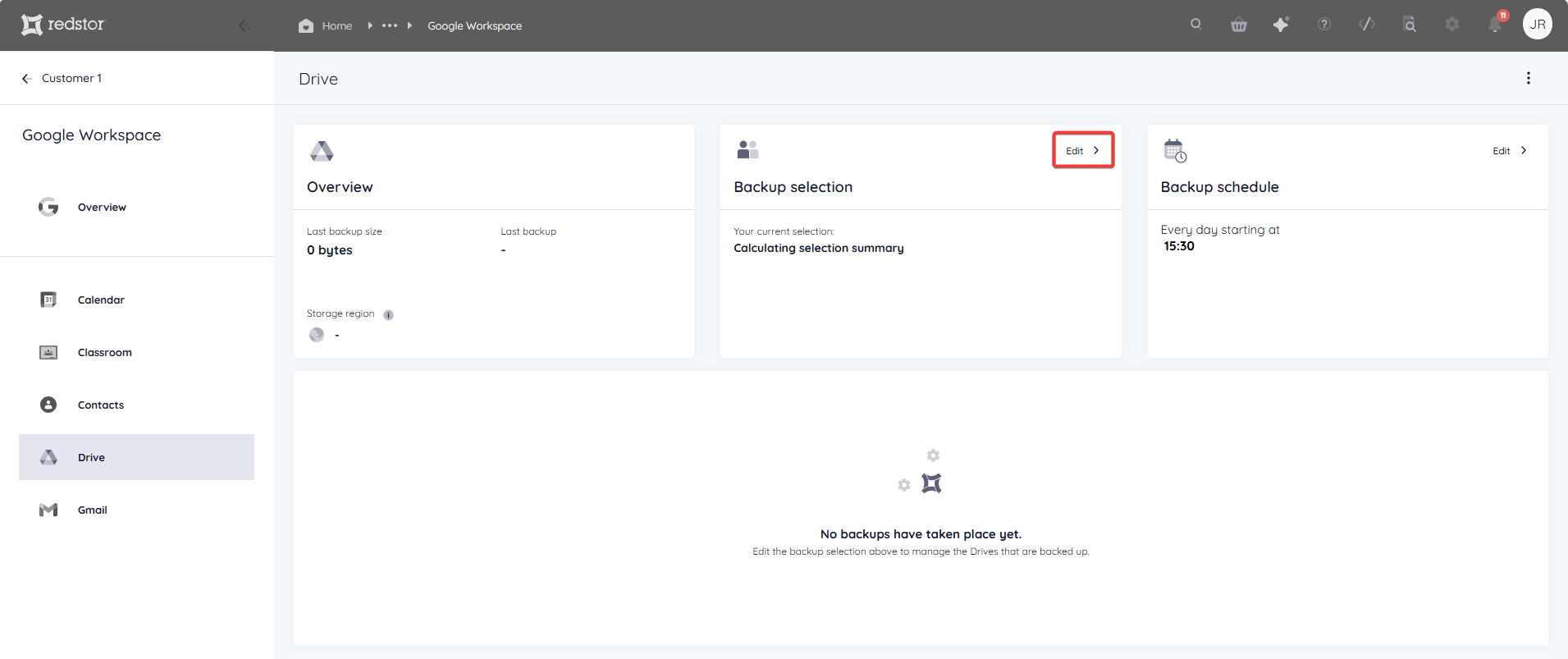 10. Close the Google Marketplace tab in your browser to return to the RedApp. Our system will have picked up that permissions have been allowed, and you will be taken to the home page for your new backup set.