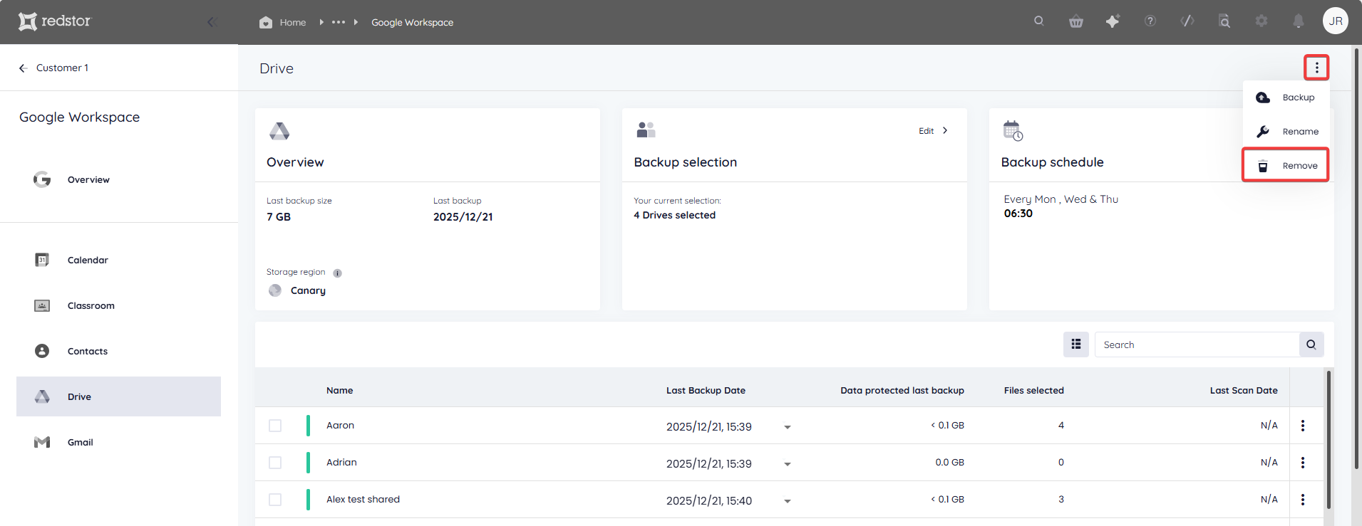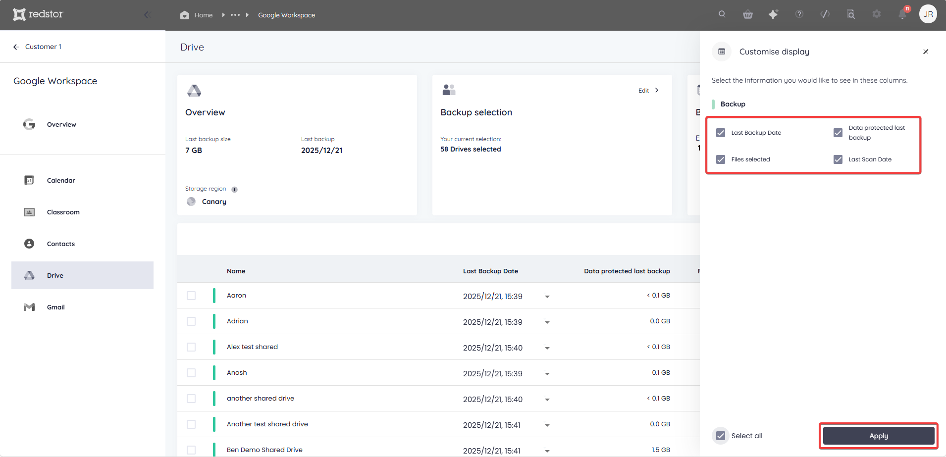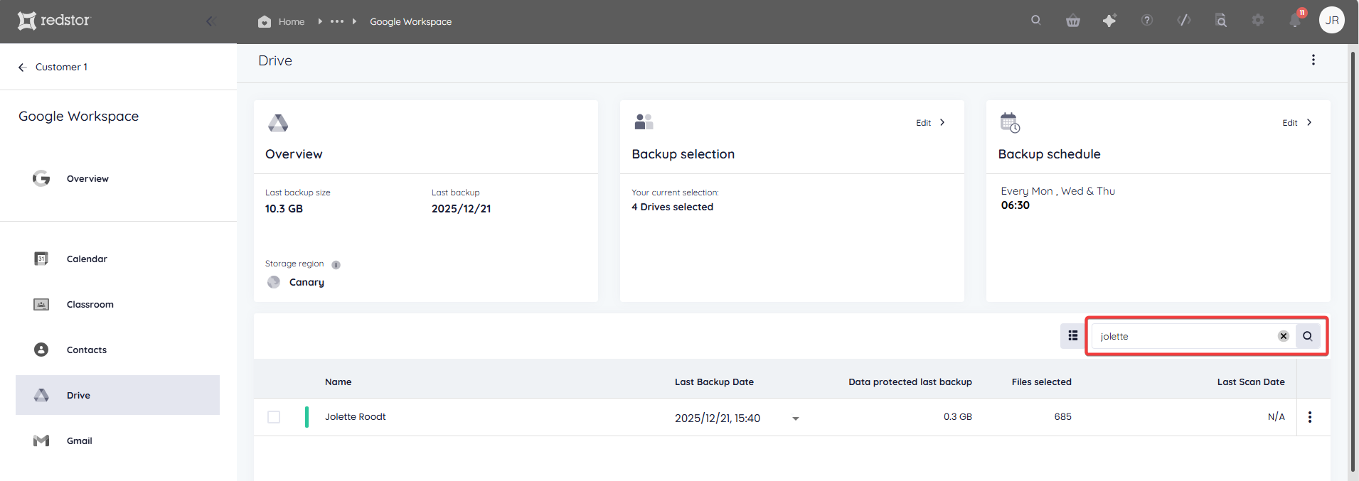 - Important: If a Google Workspace user leaves your organisation, do not delete the user. Redstor has no way of restoring a deleted user's Contacts or Calendar. Gmail can be restored to a different account. If you withdraw the departing user's Google Workspace licence, even if you do not delete the user, Google is under no obligation to retain that user's data. The data may appear to remain present but can be removed by Google at any time as part of cleanup. Consider assigning an archive licence or exporting the data for alternative storage instead.