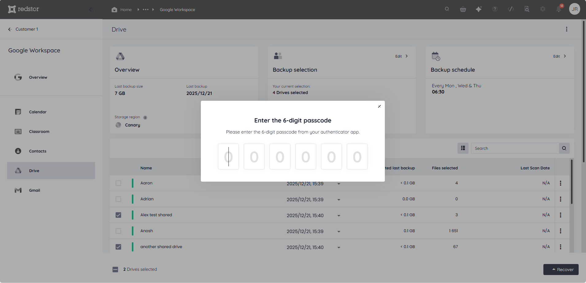 To do a recovery, you need to be both a RedApp company administrator, and a Google Workspace super administrator for your tenant organisation. Read more about Google Workspace admin roles in this article on their knowledge base.