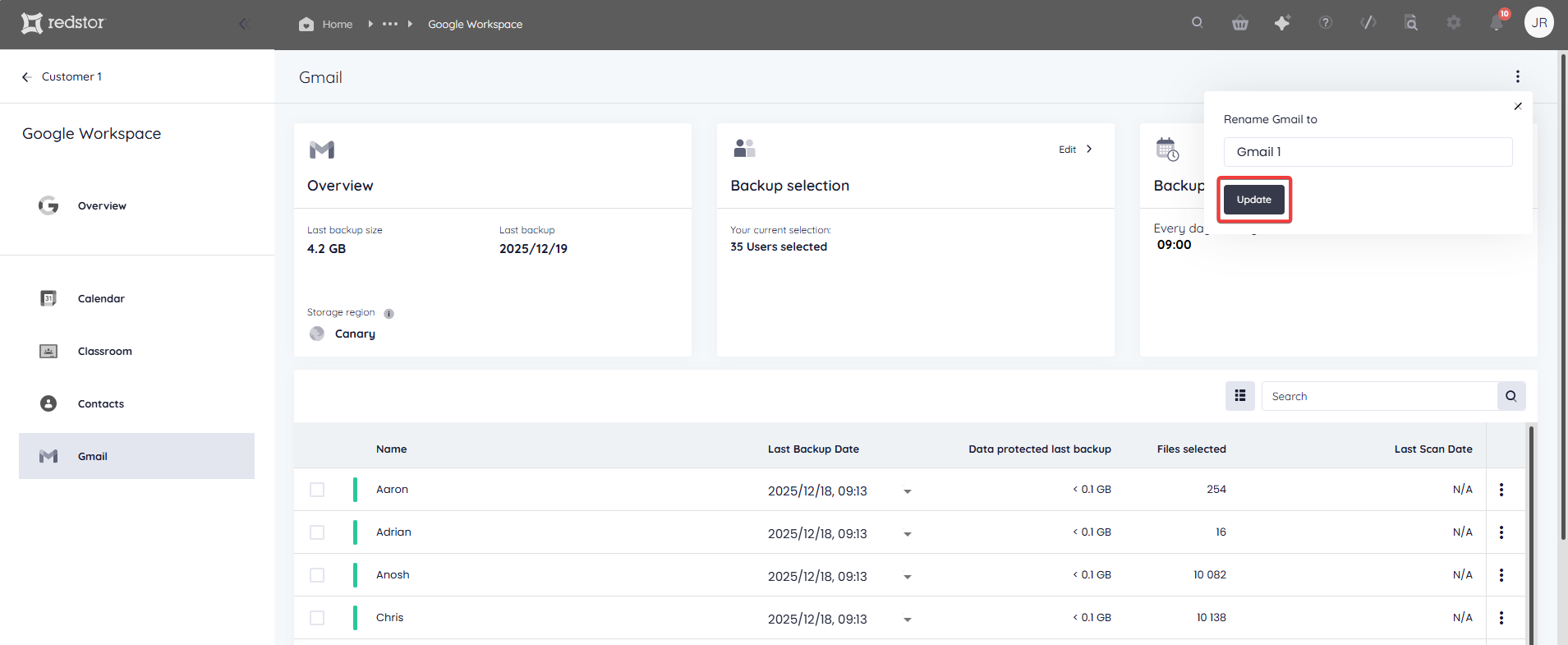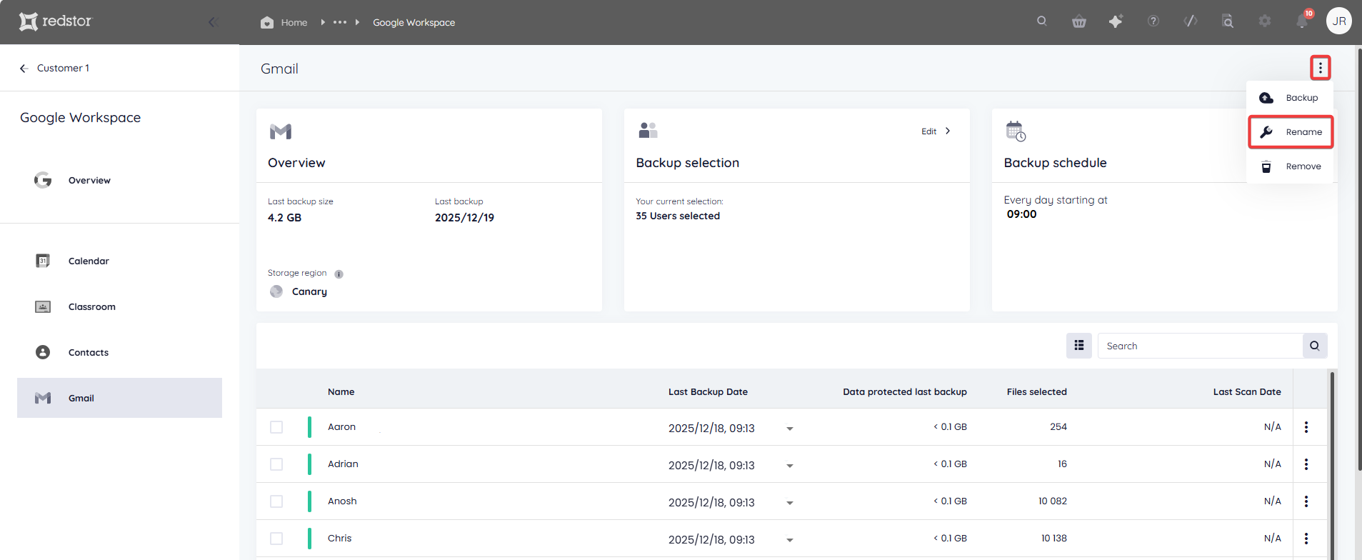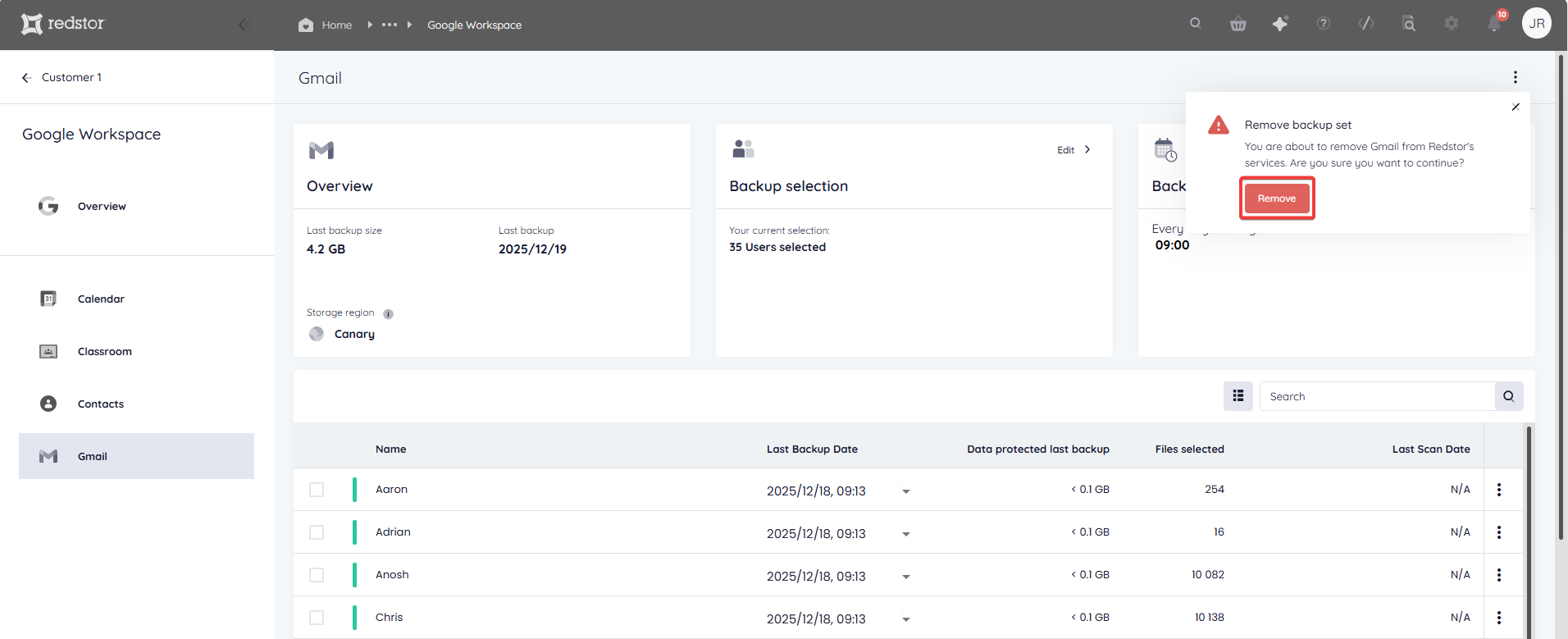 - Important: If a Google Workspace user leaves your organisation, do not delete the user. Redstor has no way of restoring a deleted user's Contacts or Calendar. Gmail can be restored to a different account. If you withdraw the departing user's Google Workspace licence, even if you do not delete the user, Google is under no obligation to retain that user's data. The data may appear to remain present but can be removed by Google at any time as part of cleanup. Consider assigning an archive licence or exporting the data for alternative storage instead.